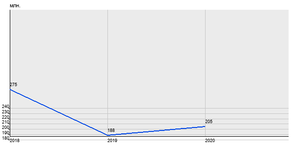 275 млн. руб, а в 2020 году - 205 млн. руб. Таким образом, средняя стоимость четырёхкомнатных квартир в районе "Якиманка" за