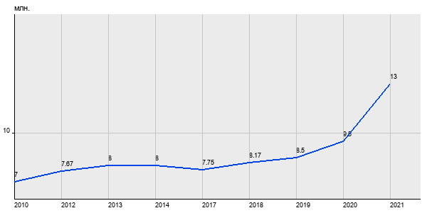 7 млн. руб, а в 2021 году - 13 млн. руб. Таким образом, средняя стоимость трёхкомнатных квартир в районе "Орехово-Борисово Южное" за