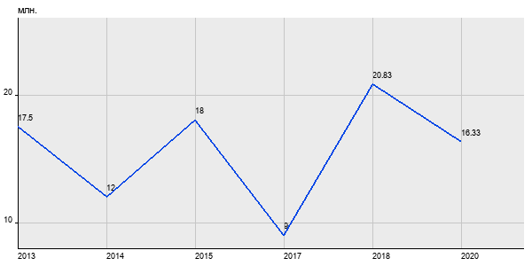 17.5 млн. руб, а в 2020 году - 16.33 млн. руб. Таким образом, средняя стоимость однокомнатных квартир в районе "Хамовники" за