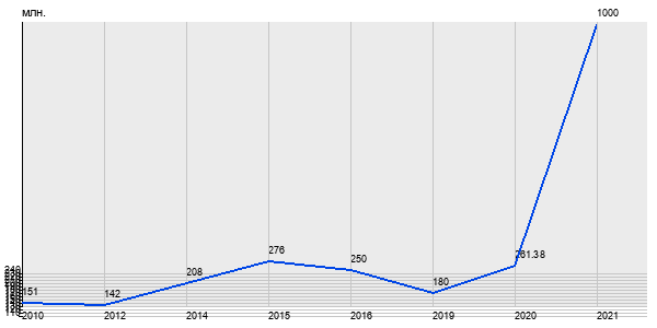 151 млн. руб, а в 2021 году - 1000 млн. руб. Таким образом, средняя стоимость четырёхкомнатных квартир в районе "Хамовники" за