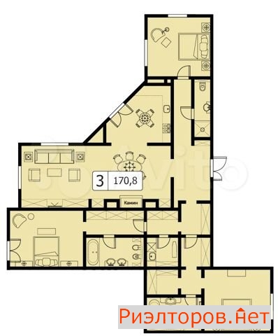 Квартира 3-к. 171.0 м2
