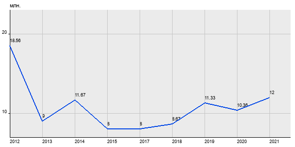 18.56 млн. руб, а в 2021 году - 12 млн. руб. Таким образом, средняя стоимость двухкомнатных квартир в районе "Бескудниковский" за