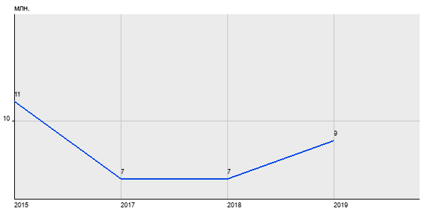 11 млн. руб, а в 2019 году - 9 млн. руб. Таким образом, средняя стоимость двухкомнатных квартир в районе "Кузьминки" за