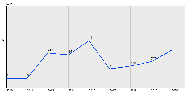 6 млн. руб, а в 2020 году - 9 млн. руб. Таким образом, средняя стоимость двухкомнатных квартир в районе "Новокосино" за