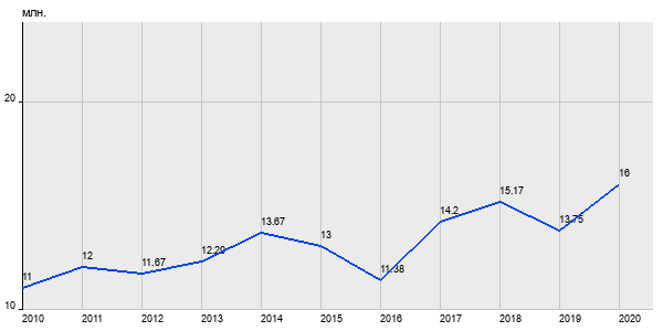 11 млн. руб, а в 2020 году - 16 млн. руб. Таким образом, средняя стоимость трёхкомнатных квартир в районе "Тропарёво-Никулино" за
