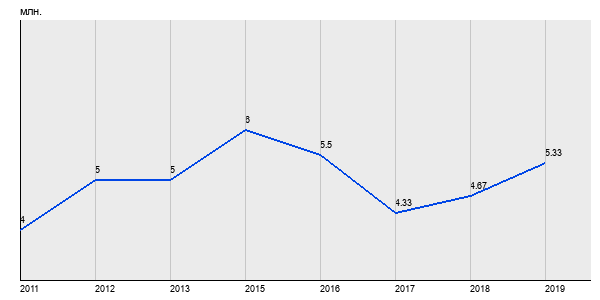 4 млн. руб, а в 2019 году - 5.33 млн. руб. Таким образом, средняя стоимость однокомнатных квартир в районе "Ивановское" за