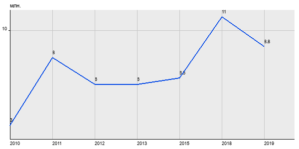 3 млн. руб, а в 2019 году - 8.8 млн. руб. Таким образом, средняя стоимость двухкомнатных квартир в районе "Тимирязевский" за