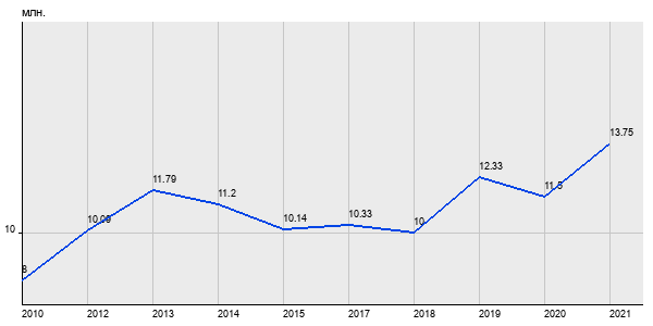 8 млн. руб, а в 2021 году - 13.75 млн. руб. Таким образом, средняя стоимость двухкомнатных квартир в районе "Зюзино" за
