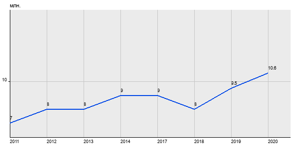 7 млн. руб, а в 2020 году - 10.6 млн. руб. Таким образом, средняя стоимость двухкомнатных квартир в районе "Очаково-Матвеевское" за