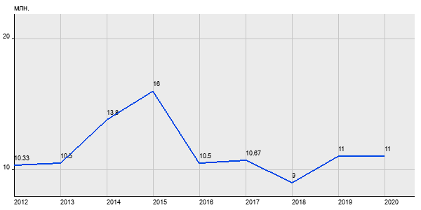 10.33 млн. руб, а в 2020 году - 11 млн. руб. Таким образом, средняя стоимость двухкомнатных квартир в районе "Пресненский" за