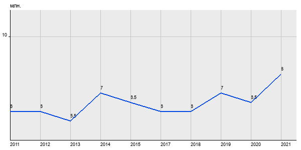 6 млн. руб, а в 2021 году - 8 млн. руб. Таким образом, средняя стоимость двухкомнатных квартир в районе "Новогиреево" за