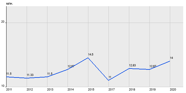 11.5 млн. руб, а в 2020 году - 14 млн. руб. Таким образом, средняя стоимость трёхкомнатных квартир в районе "Бабушкинский" за