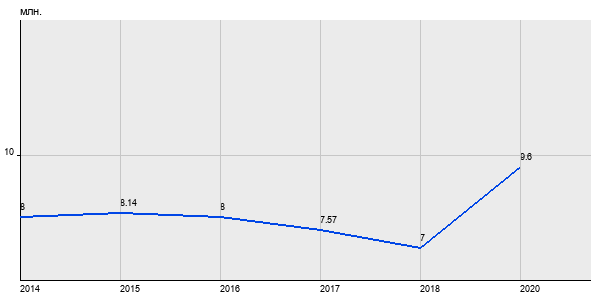 8 млн. руб, а в 2020 году - 9.6 млн. руб. Таким образом, средняя стоимость двухкомнатных квартир в районе "Братеево" за