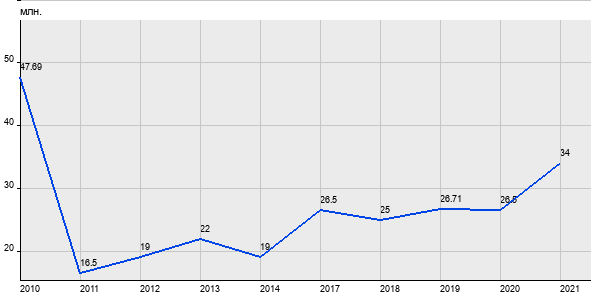 47.69 млн. руб, а в 2021 году - 34 млн. руб. Таким образом, средняя стоимость двухкомнатных квартир в районе "Пресненский" за
