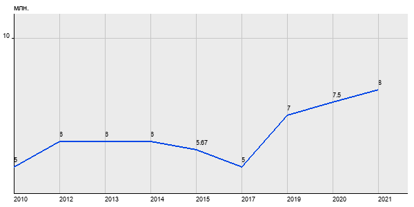 5 млн. руб, а в 2021 году - 8 млн. руб. Таким образом, средняя стоимость двухкомнатных квартир в районе "Кузьминки" за