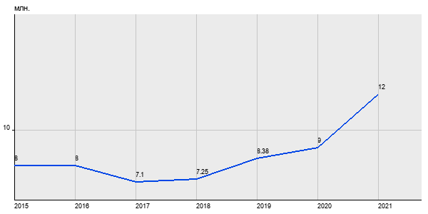 8 млн. руб, а в 2021 году - 12 млн. руб. Таким образом, средняя стоимость трёхкомнатных квартир в районе "Лосиноостровский" за