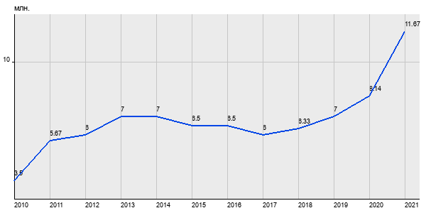 3.5 млн. руб, а в 2021 году - 11.67 млн. руб. Таким образом, средняя стоимость двухкомнатных квартир в районе "Дмитровский" за