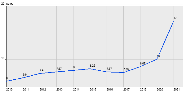 6 млн. руб, а в 2021 году - 17 млн. руб. Таким образом, средняя стоимость двухкомнатных квартир в районе "Тимирязевский" за