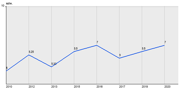 5 млн. руб, а в 2020 году - 7 млн. руб. Таким образом, средняя стоимость двухкомнатных квартир в районе "Вешняки" за