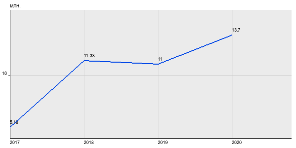 5.18 млн. руб, а в 2020 году - 13.7 млн. руб. Таким образом, средняя стоимость двухкомнатных квартир в районе "Марьино" за