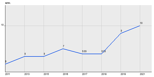 5 млн. руб, а в 2021 году - 10 млн. руб. Таким образом, средняя стоимость двухкомнатных квартир в районе "Нагорный" за