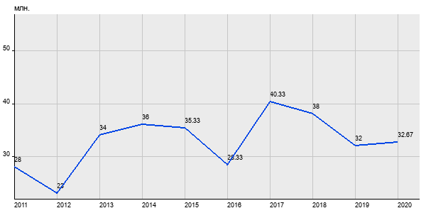 28 млн. руб, а в 2020 году - 32.67 млн. руб. Таким образом, средняя стоимость двухкомнатных квартир в районе "Хамовники" за