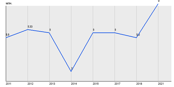 5.5 млн. руб, а в 2021 году - 9 млн. руб. Таким образом, средняя стоимость двухкомнатных квартир в районе "Некрасовка" за