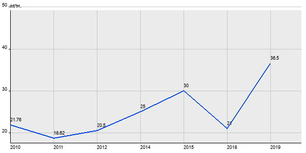 21.76 млн. руб, а в 2019 году - 36.5 млн. руб. Таким образом, средняя стоимость двухкомнатных квартир в районе "Арбат" за