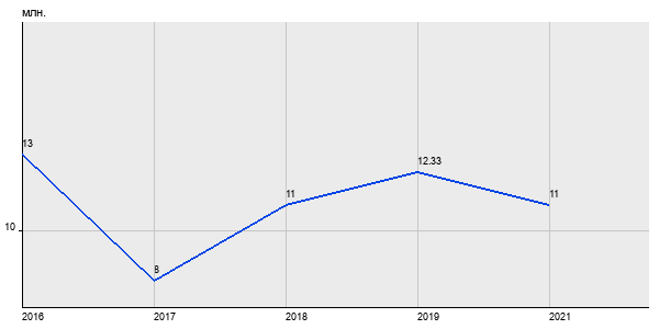 13 млн. руб, а в 2021 году - 11 млн. руб. Таким образом, средняя стоимость двухкомнатных квартир в районе "Очаково-Матвеевское" за