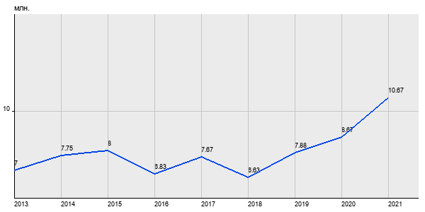 7 млн. руб, а в 2021 году - 10.67 млн. руб. Таким образом, средняя стоимость двухкомнатных квартир в районе "Марьина Роща" за