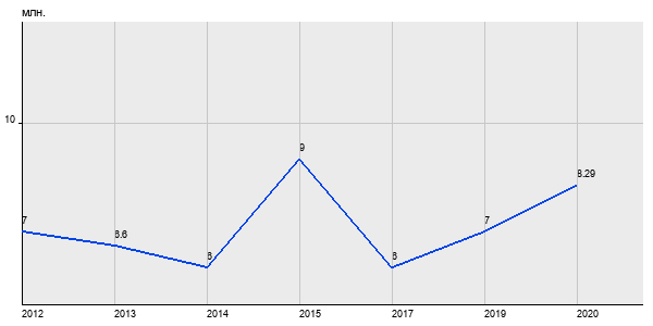 7 млн. руб, а в 2020 году - 8.29 млн. руб. Таким образом, средняя стоимость двухкомнатных квартир в районе "Люблино" за