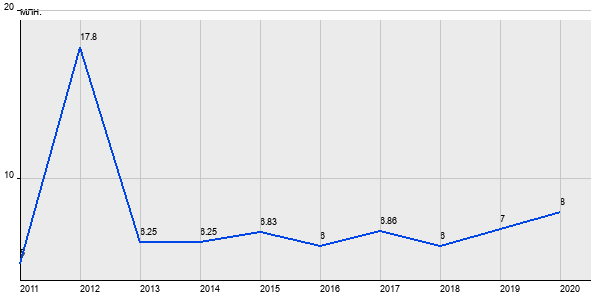 5 млн. руб, а в 2020 году - 8 млн. руб. Таким образом, средняя стоимость двухкомнатных квартир в районе "Северное Измайлово" за