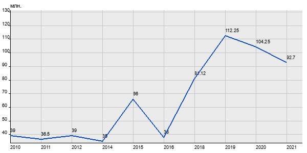 39 млн. руб, а в 2021 году - 92.7 млн. руб. Таким образом, средняя стоимость двухкомнатных квартир в районе "Пресненский" за