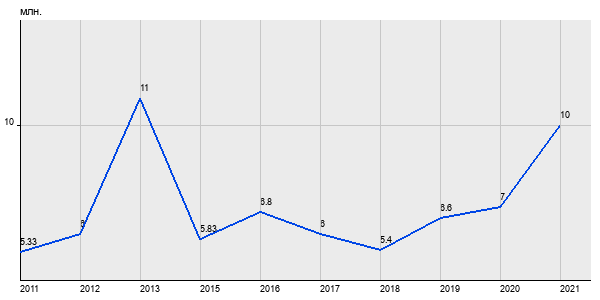 5.33 млн. руб, а в 2021 году - 10 млн. руб. Таким образом, средняя стоимость двухкомнатных квартир в районе "Гольяново" за