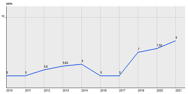 5 млн. руб, а в 2021 году - 8 млн. руб. Таким образом, средняя стоимость двухкомнатных квартир в районе "Кузьминки" за
