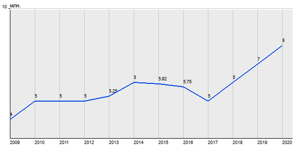 4 млн. руб, а в 2020 году - 8 млн. руб. Таким образом, средняя стоимость двухкомнатных квартир в районе "Люблино" за