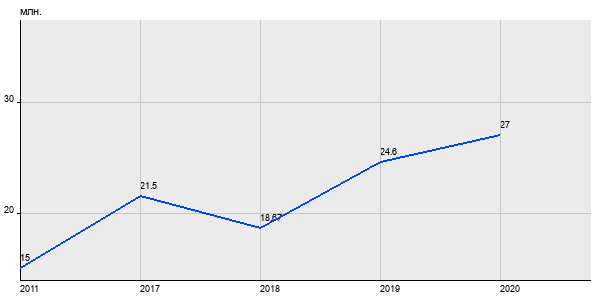 15 млн. руб, а в 2020 году - 27 млн. руб. Таким образом, средняя стоимость двухкомнатных квартир в районе "Басманный" за
