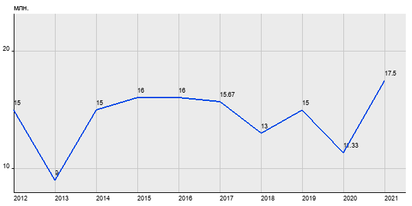 15 млн. руб, а в 2021 году - 17.5 млн. руб. Таким образом, средняя стоимость двухкомнатных квартир в районе "Пресненский" за