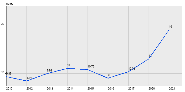 9.33 млн. руб, а в 2021 году - 19 млн. руб. Таким образом, средняя стоимость двухкомнатных квартир в районе "Тверской" за