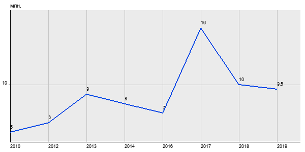 5 млн. руб, а в 2019 году - 9.5 млн. руб. Таким образом, средняя стоимость двухкомнатных квартир в районе "Проспект Вернадского" за