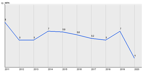 8 млн. руб, а в 2020 году - 4 млн. руб. Таким образом, средняя стоимость двухкомнатных квартир в районе "Чертаново Центральное" за