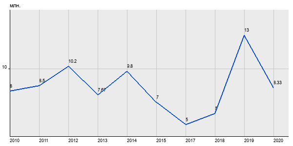 8 млн. руб, а в 2020 году - 8.33 млн. руб. Таким образом, средняя стоимость двухкомнатных квартир в районе "Солнцево" за