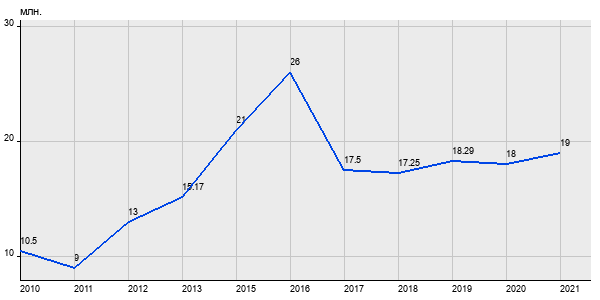 10.5 млн. руб, а в 2021 году - 19 млн. руб. Таким образом, средняя стоимость трёхкомнатных квартир в районе "Зюзино" за