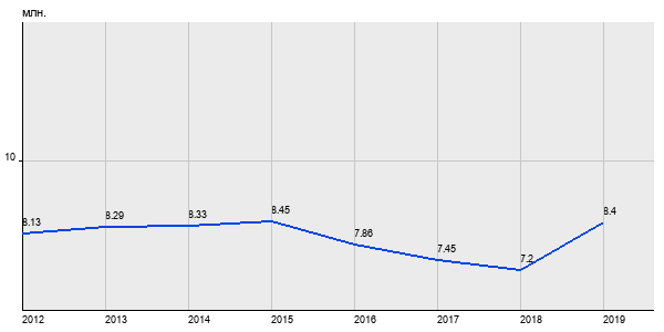 8.13 млн. руб, а в 2019 году - 8.4 млн. руб. Таким образом, средняя стоимость двухкомнатных квартир в районе "Марьино" за
