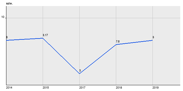 8 млн. руб, а в 2019 году - 8 млн. руб. Таким образом, средняя стоимость двухкомнатных квартир в районе "Алтуфьевский" за