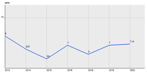 8 млн. руб, а в 2020 году - 7.14 млн. руб. Таким образом, средняя стоимость двухкомнатных квартир в районе "Новогиреево" за