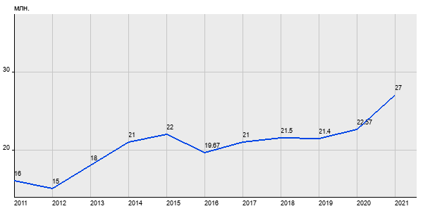 16 млн. руб, а в 2021 году - 27 млн. руб. Таким образом, средняя стоимость четырёхкомнатных квартир в районе "Пресненский" за