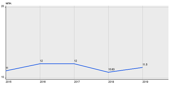 11 млн. руб, а в 2019 году - 11.5 млн. руб. Таким образом, средняя стоимость двухкомнатных квартир в районе "Сокол" за