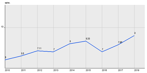 6 млн. руб, а в 2019 году - 9 млн. руб. Таким образом, средняя стоимость двухкомнатных квартир в районе "Южное Медведково" за
