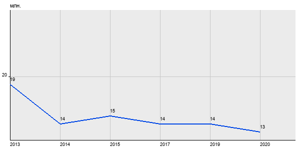 19 млн. руб, а в 2020 году - 13 млн. руб. Таким образом, средняя стоимость двухкомнатных квартир в районе "Басманный" за